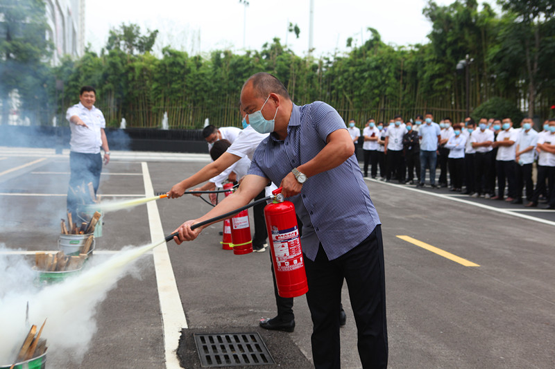 隨后,參會人員聚集于辦公樓西側(cè),參加了消防滅火演練,結(jié)合專業(yè)人員的示范、講解,一些員工親自操作了滅火器進行滅火,經(jīng)此培訓(xùn),大家對滅火器的用法知識有了進一步鞏固。公司副總經(jīng)理徐愛斌在演練結(jié)束后發(fā)表了總結(jié)講話,他表示,消防安全培訓(xùn)活動是安全生產(chǎn)月的重要活動之一,此次培訓(xùn)既包含了有關(guān)消防安全知識的傳授,又包含了火場逃生、實操滅火等實踐行動,相信全體參訓(xùn)人員在消防安全意識方面有了極大的提升。