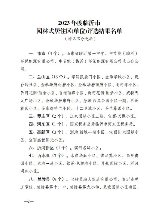 近日,由山東泰盛恒房地產有限公司開發建設、山東奧晟物業服務有限公司管理服務的金泰華城小區、金泰華府北府小區、金泰華府南府小區、金泰舒格蘭小區榮獲2023年度臨沂市“園林式居住區”稱號,在蘭山區獲評的16個小區中獨占4席,成績卓然。