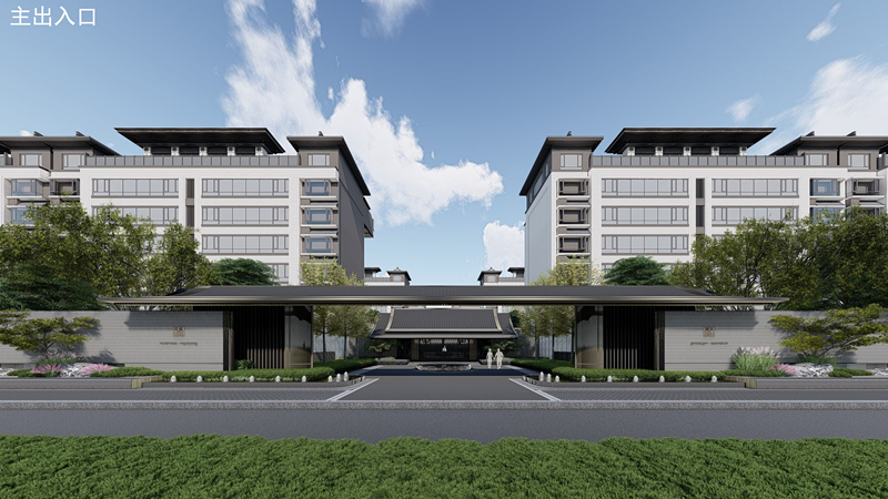 本項目建筑為三段式新中式風(fēng)格,一二層為干掛石材,三層及以上為真石漆、屋頂為深色金屬鋁板,外立面點綴中式花紋造型,整體沉穩(wěn)、大氣而不失優(yōu)雅,既是中國文化自信的表達,也是傳統(tǒng)居住精神的回歸,國風(fēng)大宅,一府藏錦繡。